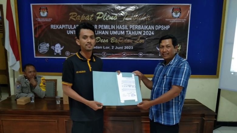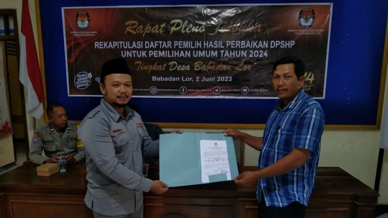 Panitia Pemungutan Suara (PPS) Desa Babadan Lor Kecamatan Balerejo Kabupaten Madiun menggelar Rapat Pleno Terbuka Rekapitulasi Daftar Pemilih Sementara Hasil Perbaikan (DPSHP) Pemilu Tahun 2024 Tingkat Desa Babadan Lor pada Jumat (02/06) bertempat di Ruang Pertemuan Kantor Desa Babadan Lor, mulai pukul 16.00 sampai dengan selesai.