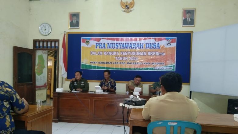 Pra Musyawarah Desa dalam rangka penyusunan RKPDes 2024 dilaksanakan pada hari Selasa (4/7/2023) di Ruang Pertemuan Desa Babadan Lor yang dihadiri oleh Kepala Desa beserta Perangkat Desa, Ketua BPD beserta anggota, Babinsa, Pendamping Lokal Desa (PLD) dan Tim Penyusun RKPDes 2024 serta Tim Verifikasi RKPDes 2024.