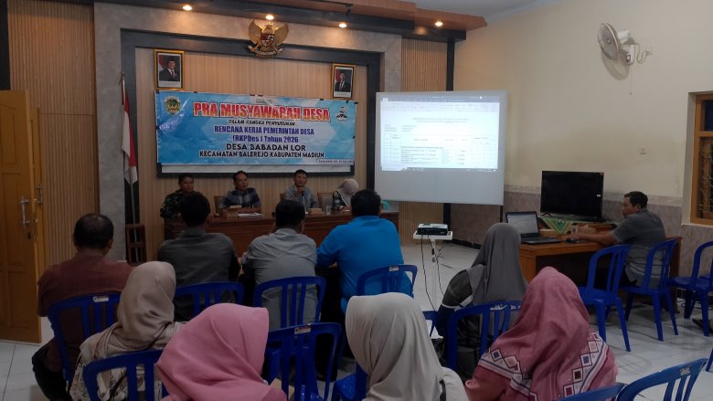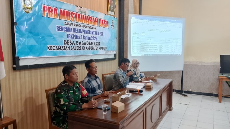 Babadan Lor (22/7) – Pemerintah Desa Babadan Lor, Kecamatan Balerejo, Kabupaten Madiun, menyelenggarakan kegiatan Pra-Musyawarah Desa (Pra-Musdes) dalam rangka penyusunan Rencana Kerja Pemerintah (RKP) Desa Tahun 2026, bertempat di Ruang Pertemuan Kantor Desa Babadan Lor.